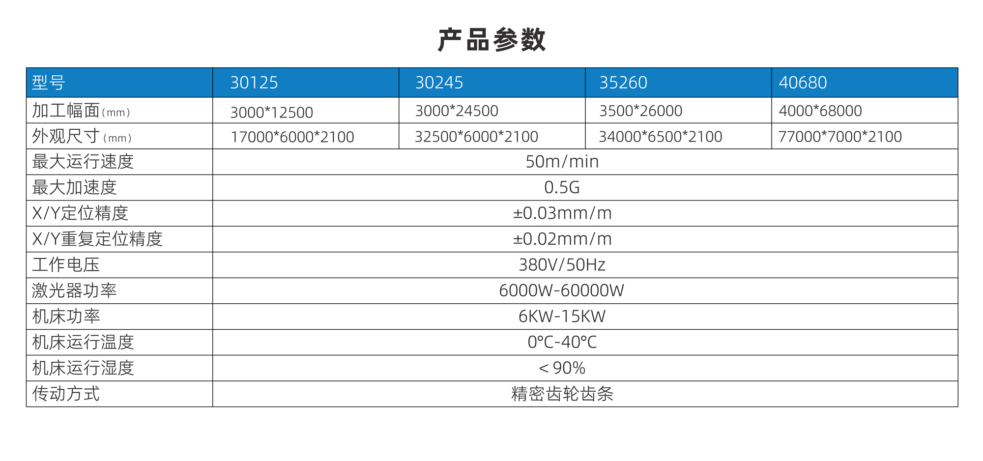 加工幅面(mm) | 3000*12500 | 3000*24500 | 3500*26000 | @4000*68000 |