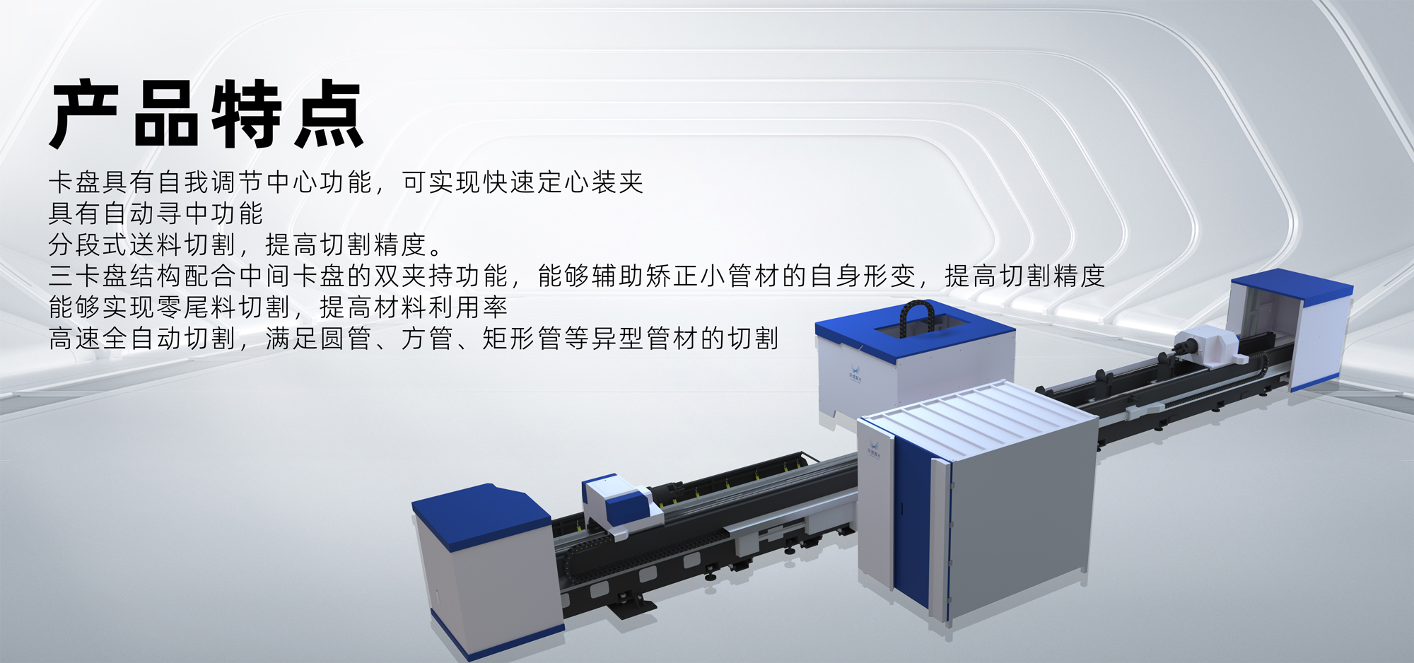 三卡盤結構配合中間卡盤的雙夾持功能,能夠輔助矯正小管材的自身形變,提高切割精度