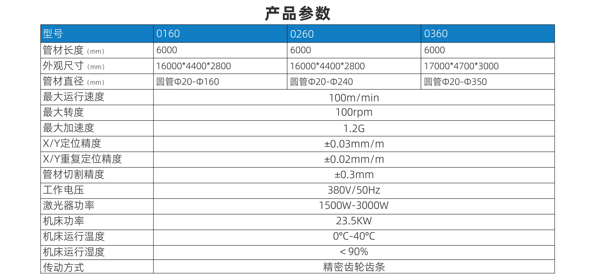 外觀尺寸(mm) | 16000*4400*2800 | 16000*4400*2800 | 17000*4700*3000 | 管材直徑(mm) | 圓管Φ20-Φ160 | 圓管Φ20-Φ240 | 圓管Φ20-Φ350 |