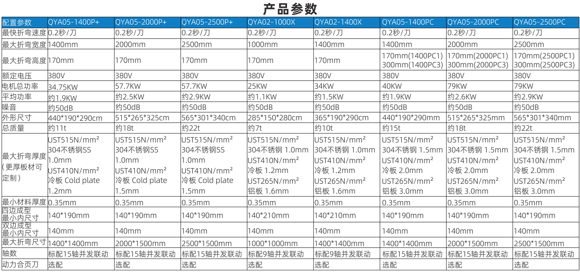 最大折彎寬度 | 1400mm | 2000mm | 2500mm | 1000mm | 1400mm | 1400mm | 2000mm | 2500mm | 最大折彎高度 | 170mm | 170mm | 170mm | 170mm | 170mm |